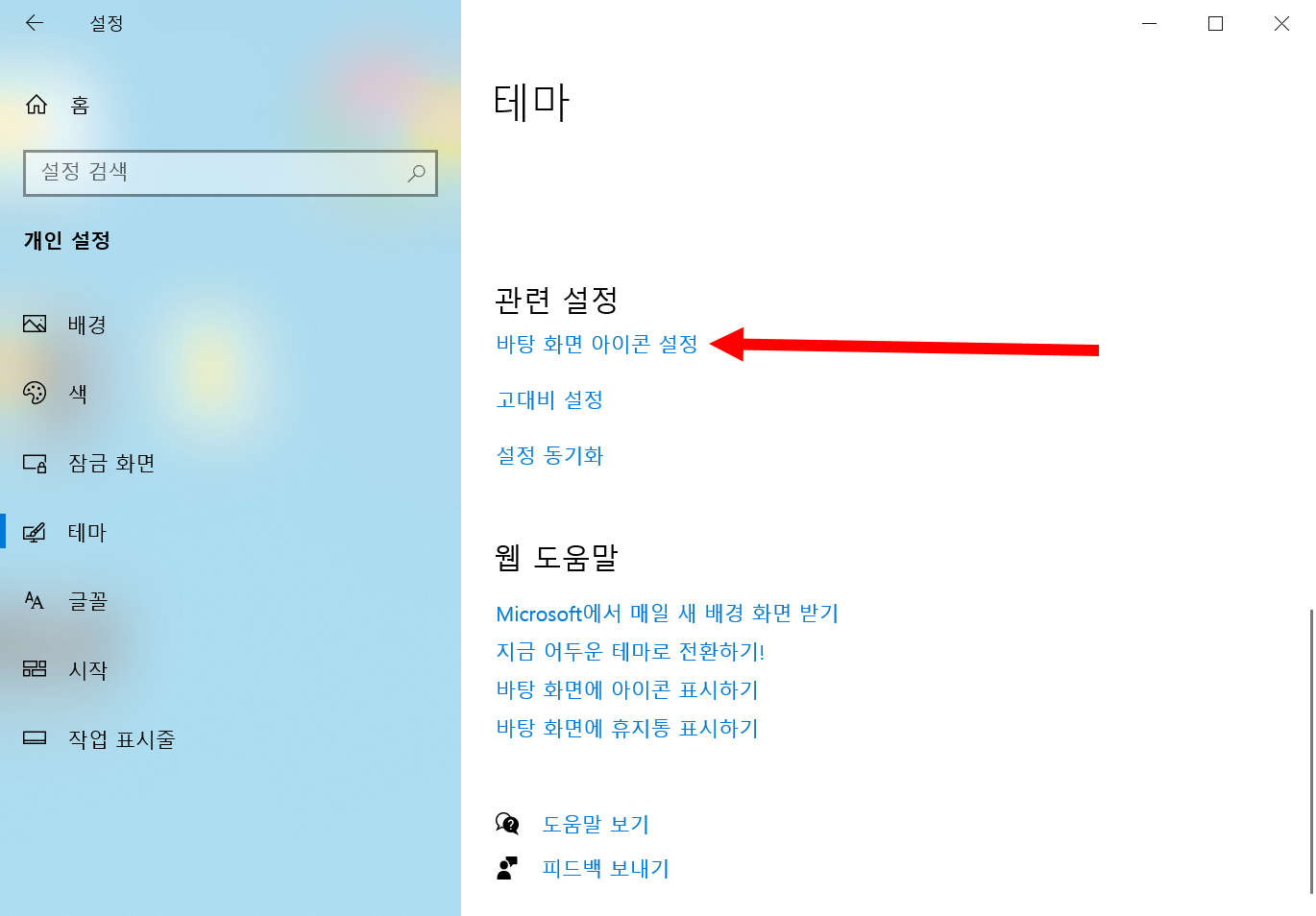 4)바탕 화면 아이콘 설정으로 이동합니다.