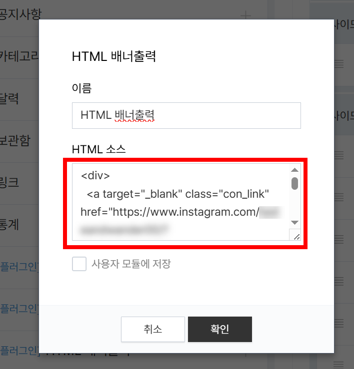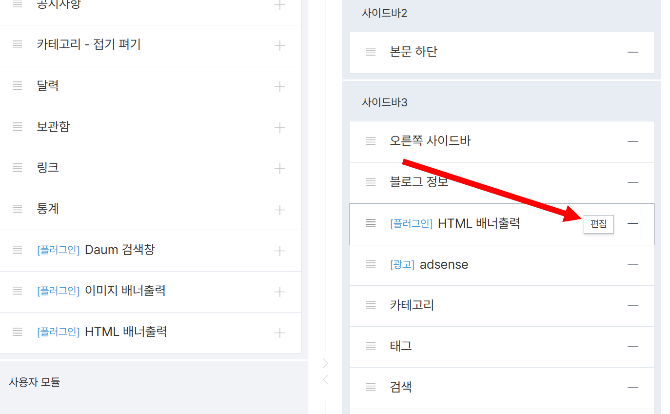 8)추가한 HTML 배너출력의 편집으로 이동합니다.