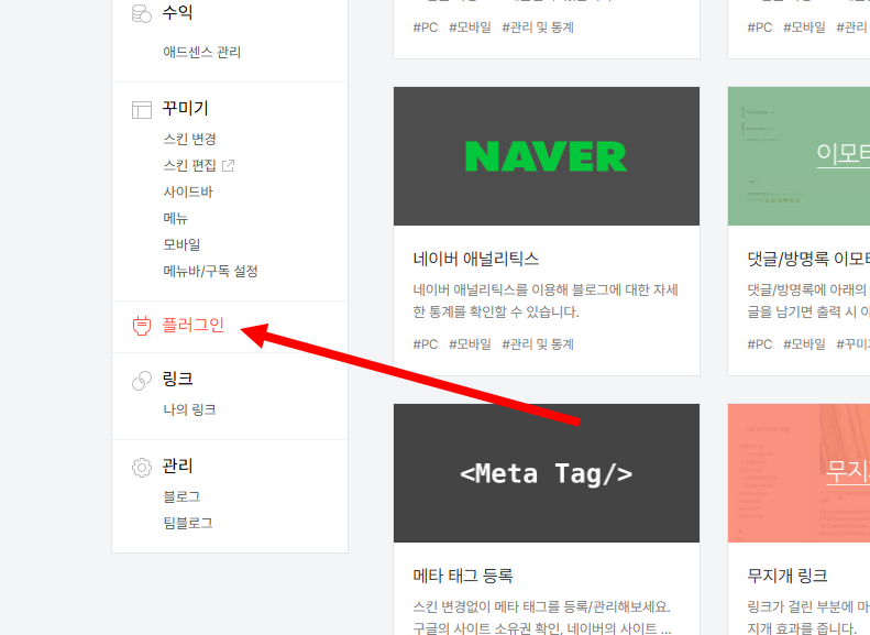 4)좌측의 플러그인 메뉴로이동합니다.