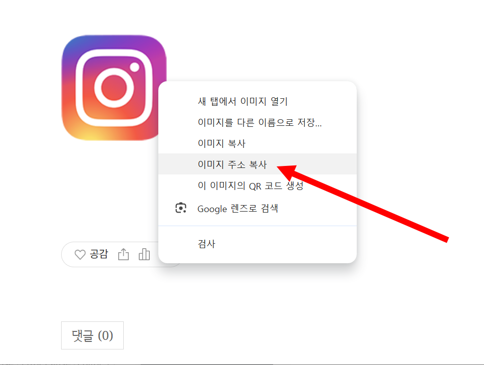 2)업로드한 게시글에서 이미지를 마우스 우클릭하고 이미지 주소를 복사합니다.