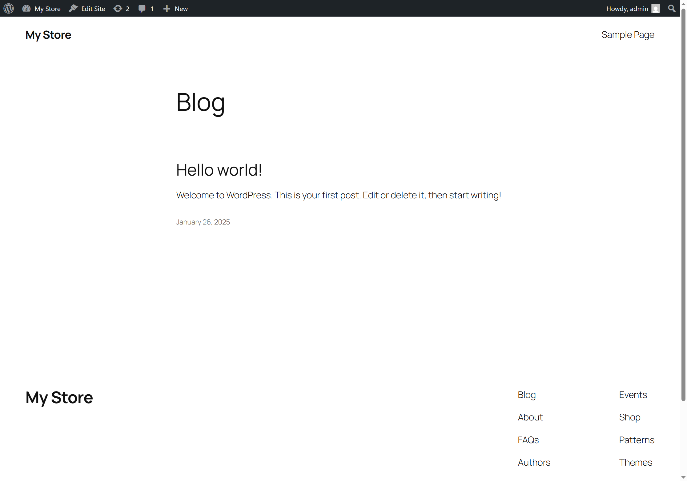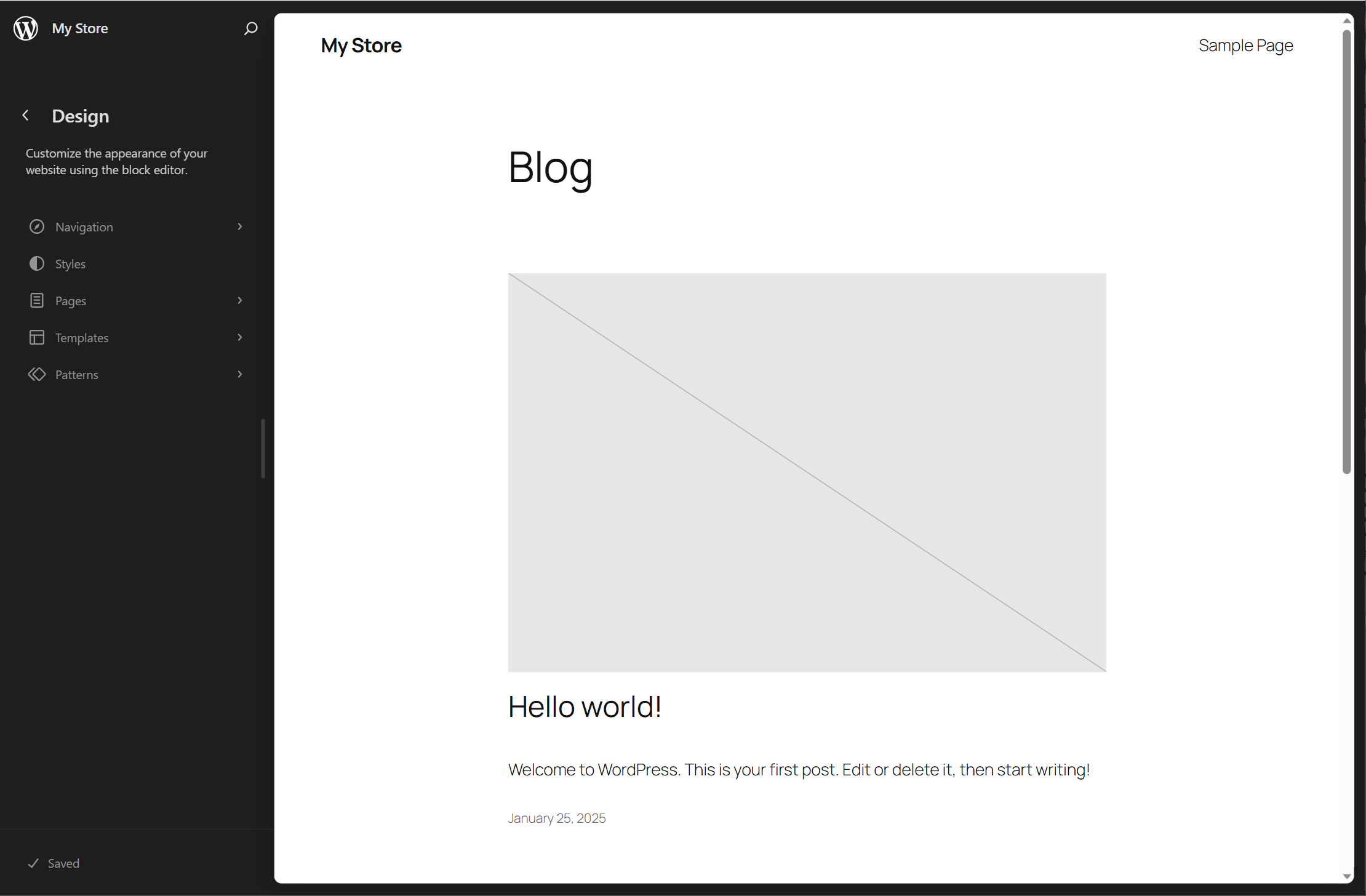 3)웹사이트의 홈페이지를 표시하며 블록 편집기를 사용하여 웹사이트의 외형을 커스터마이징할수있습니다.