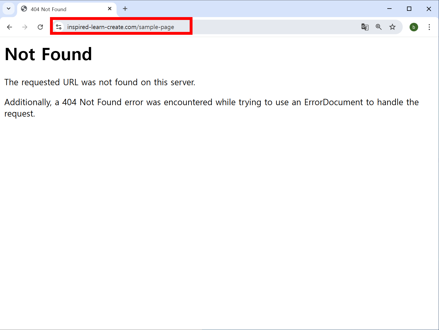 29)브라우저에서 해당 페이지 주소를 입력합니다. 사이트의 해당 페이지를 정상적으로 표시하지않는것을 확인할수있습니다(404 Not Found)