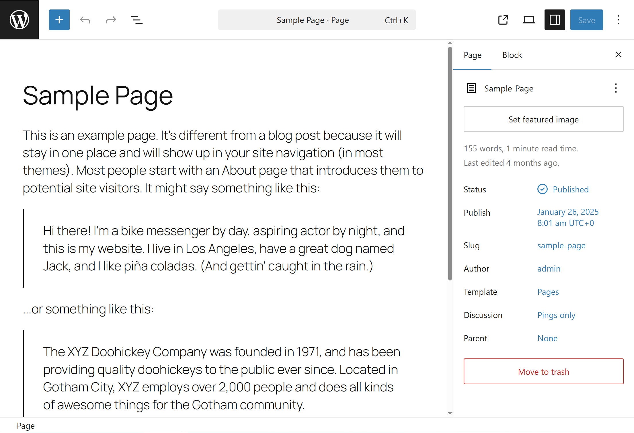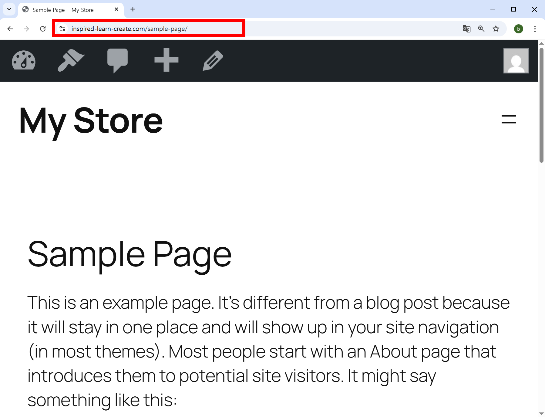 네비게이션의 메뉴가 page list, sample page로 기본 설정되있는것을 확인할수있습니다.