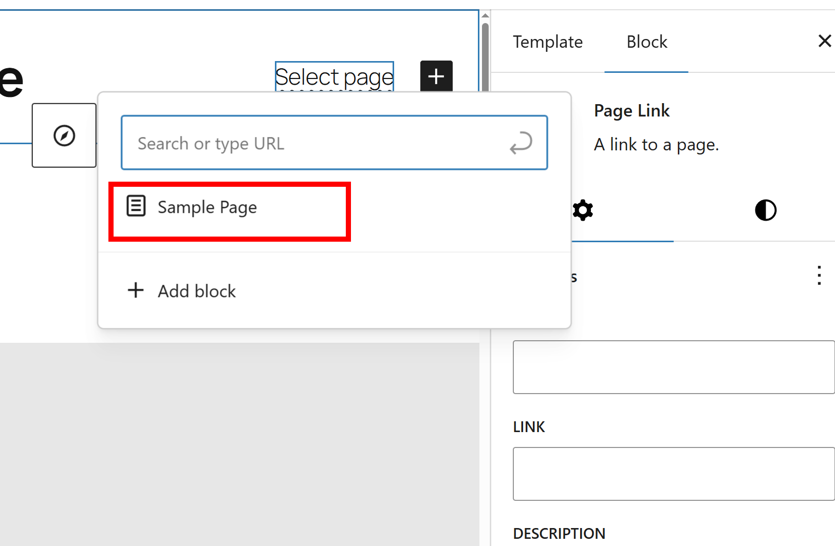 16)네비게이션 새로운 블록 추가(add block)에서 page link를 선택합니다.