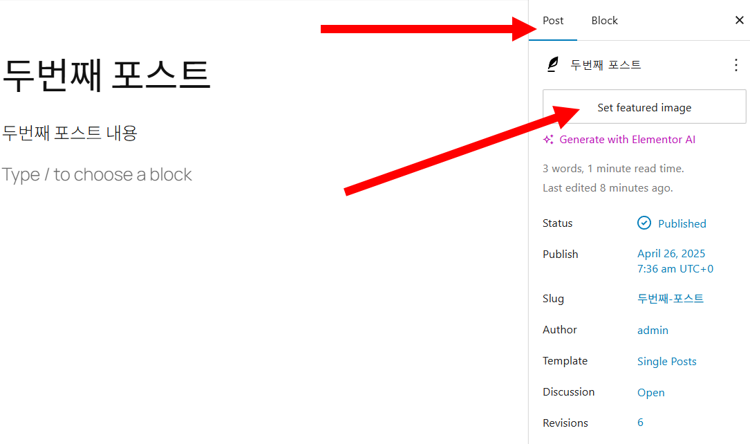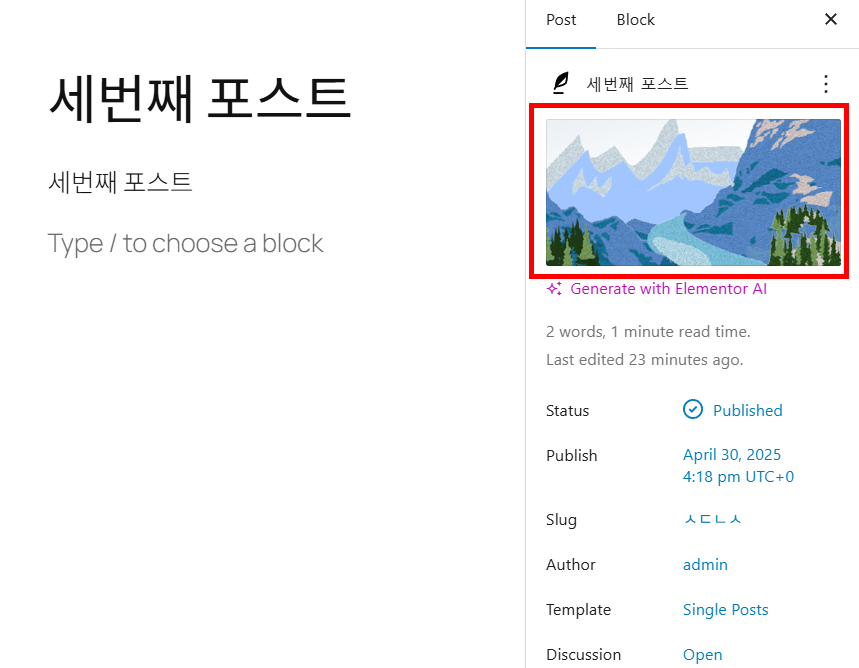 포스트 대표 이미지 설정하기(Set featured Image)