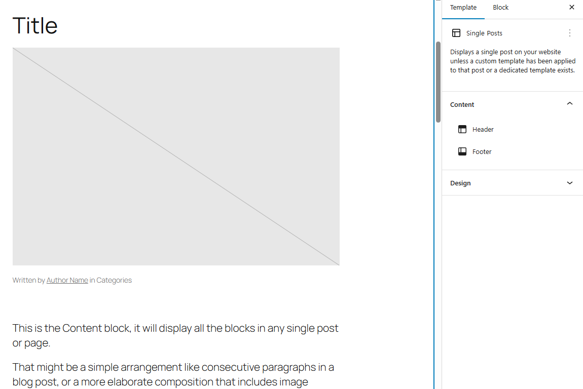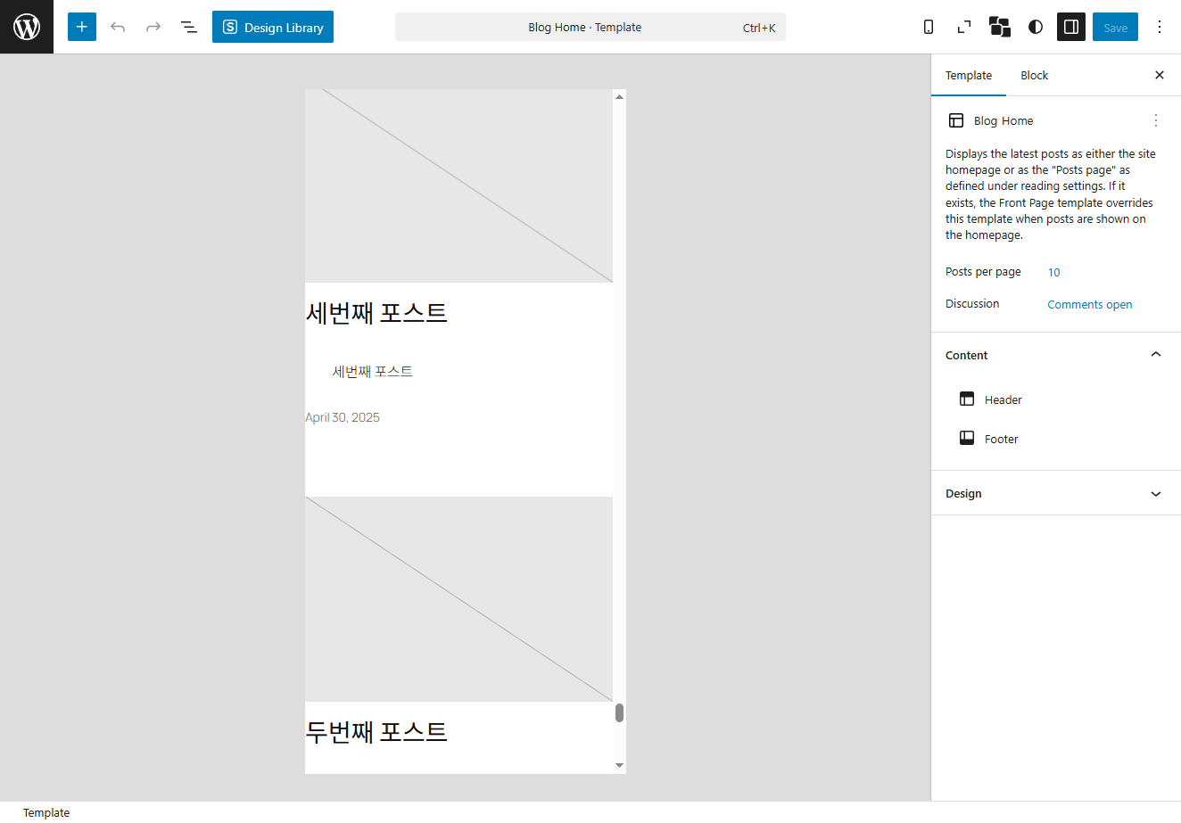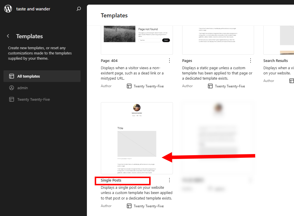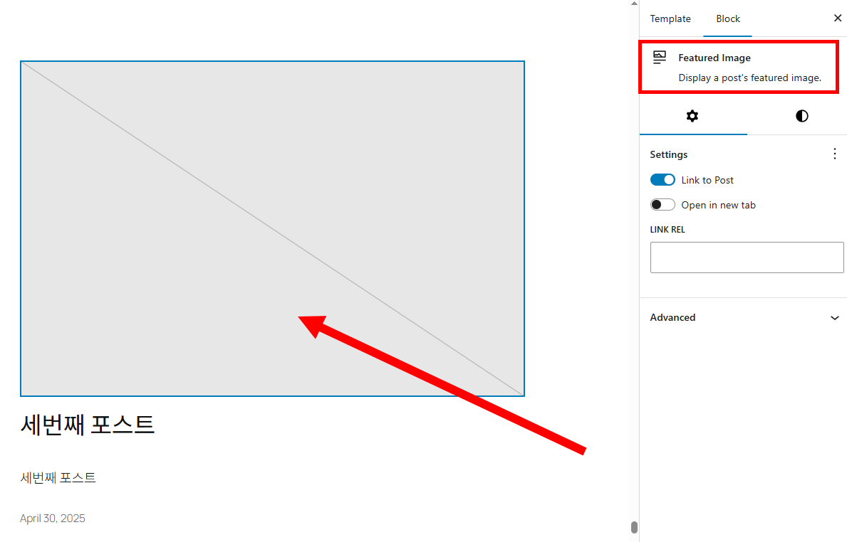 4)사이트의 블록편집기에서 개별 포스트(single post)의 미리보기 템플릿을 표시합니다.