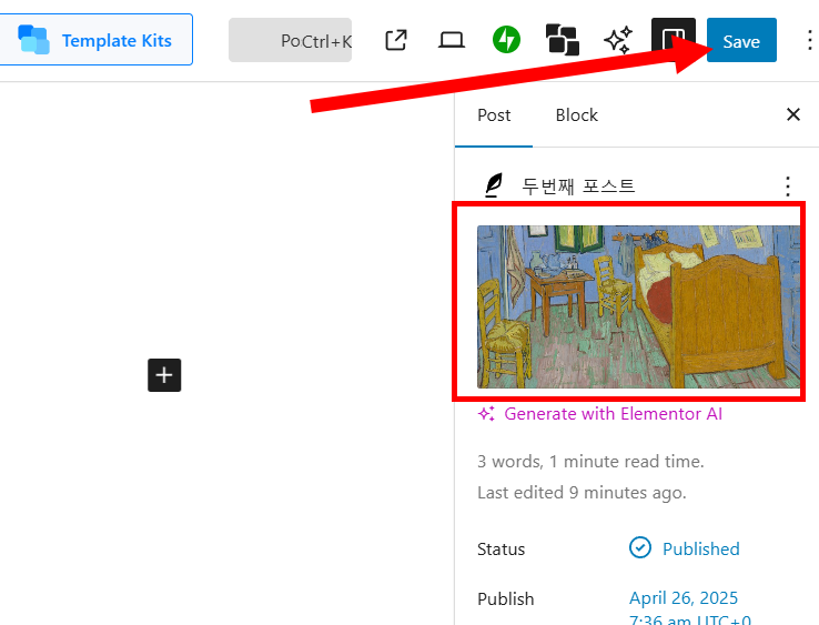 11)우측 상단 Post에서 Set featured image를 클릭합니다.