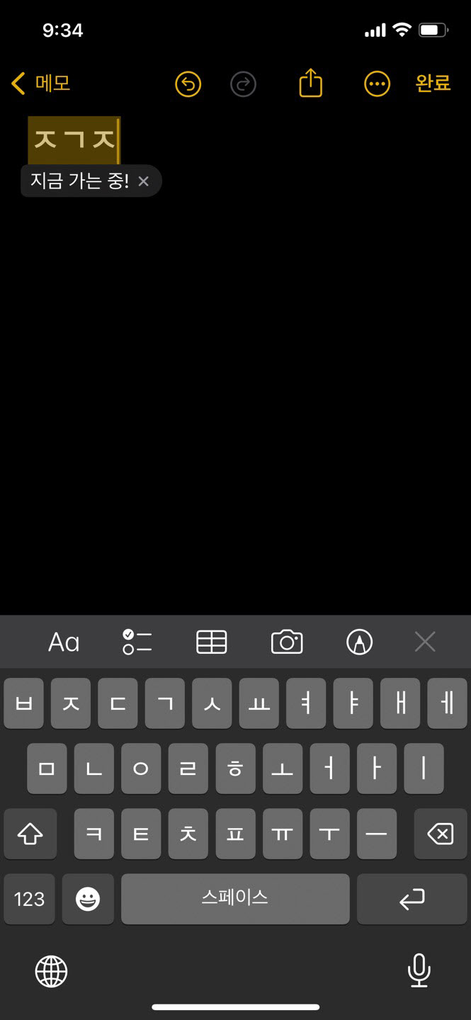 6)메모 앱에서 단축키를 입력하면 해당 단축키에 대한 문구를 표시합니다.