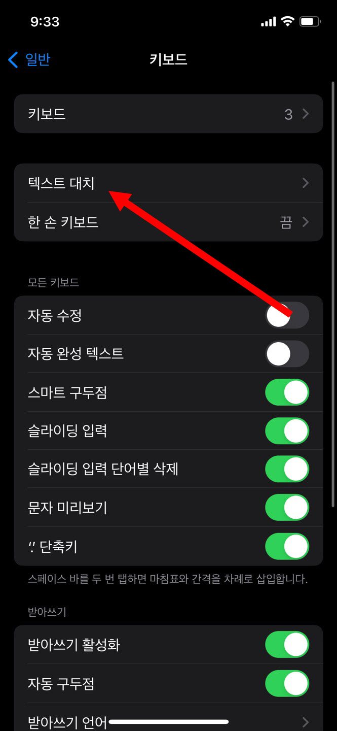 3)키보드에서 텍스트 대치로 이동합니다.