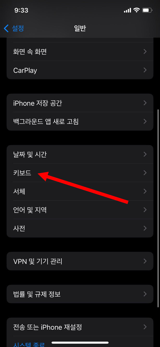 2)일반에서 키보드로 이동합니다.