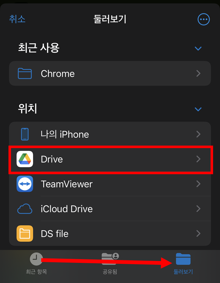 6)둘러보기에서 구글 드라이브 어플을 선택합니다.
