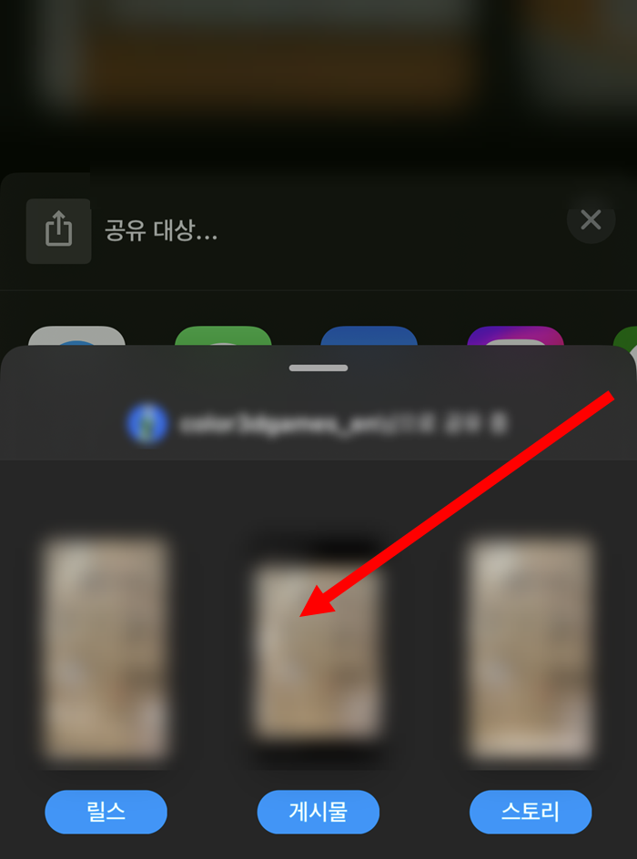 5)공유 대상에서 인스타그램 어플을 선택합니다.