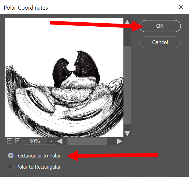 5)Rectanguar to Polar 옵션을 선택하고 확인합니다.