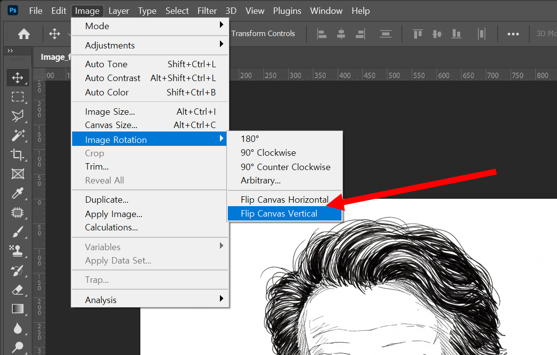3)이미지를 상하 반전 하기위해(선택) Image Rotation의 Flip Canvas Vertical를 선택합니다.