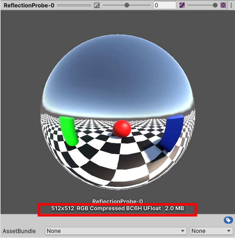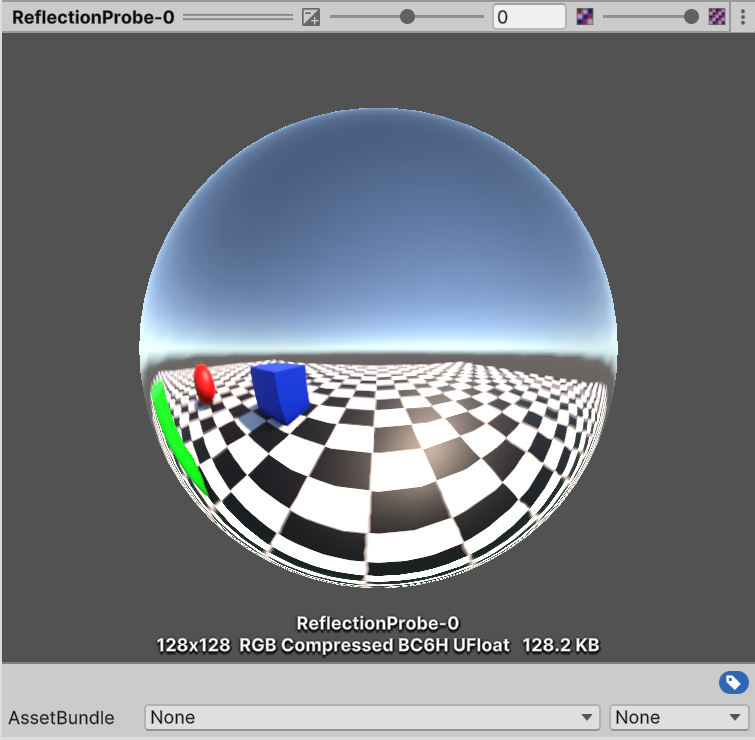 14)리플렉션 프로브 데이터는 큐브맵 텍스처 형식으로 인스펙터 하단에서 미리보기를 표시합니다.