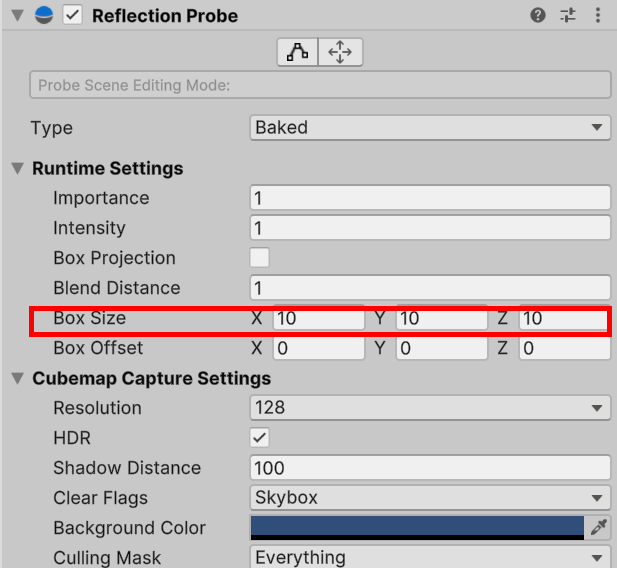 리플렉션 프로브 해상도 설정(cubemap resolution)