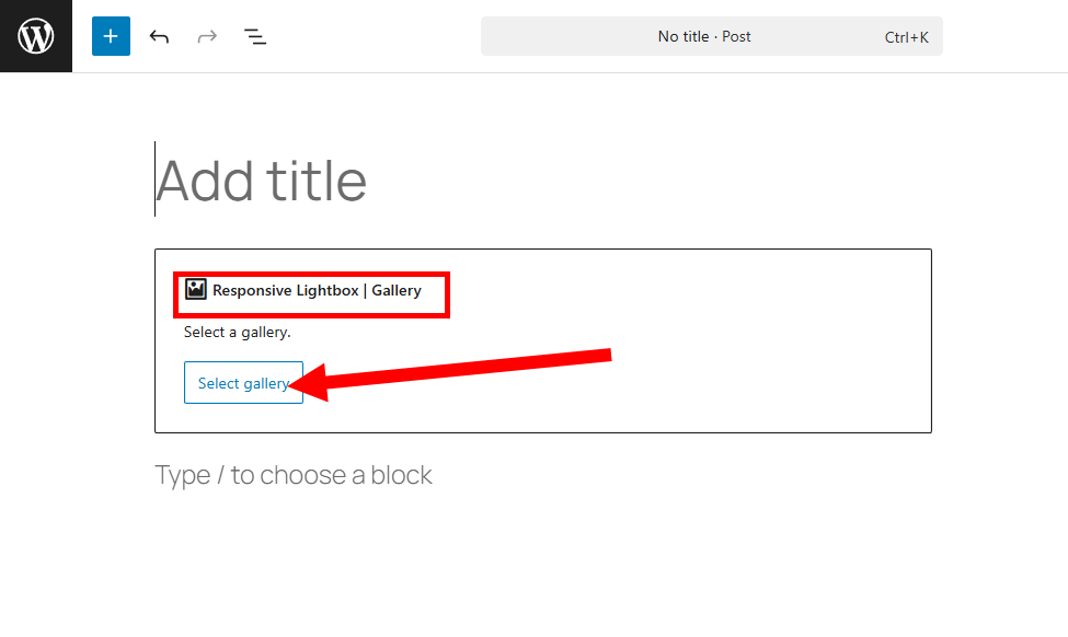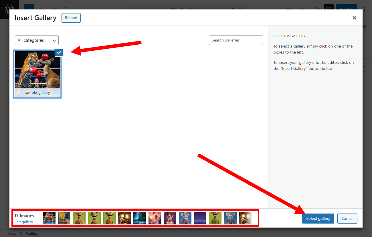 9)갤러리 블록의 select gallery로 이동합니다.