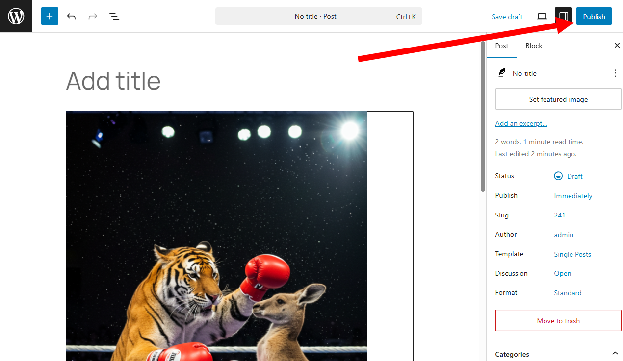 11)게시물에 갤러리 블록이 추가된것을 확인할수있습니다. 게시물을 발행합니다(publish)