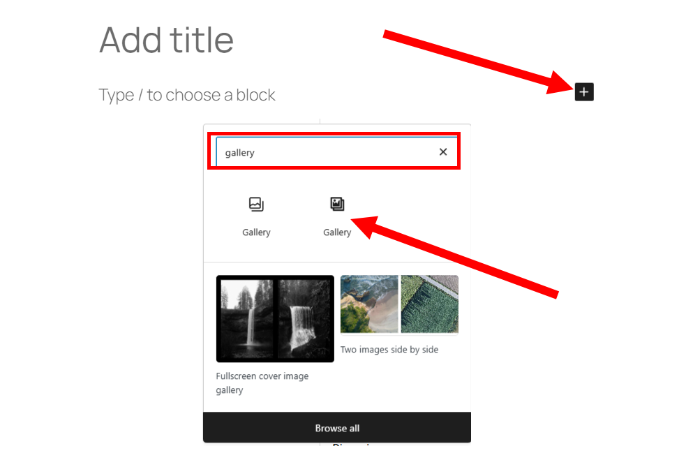 8)새로운 게시물 작성에서 갤러리 블록을 추가합니다. 기본 갤러리와 플러그인 갤러리중에 플러그인 갤러리(Responsive Lightbox gallery)를 추가합니다.