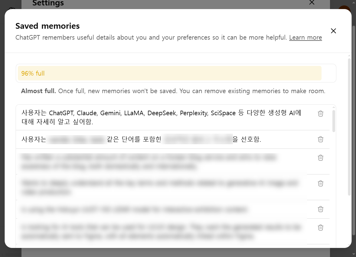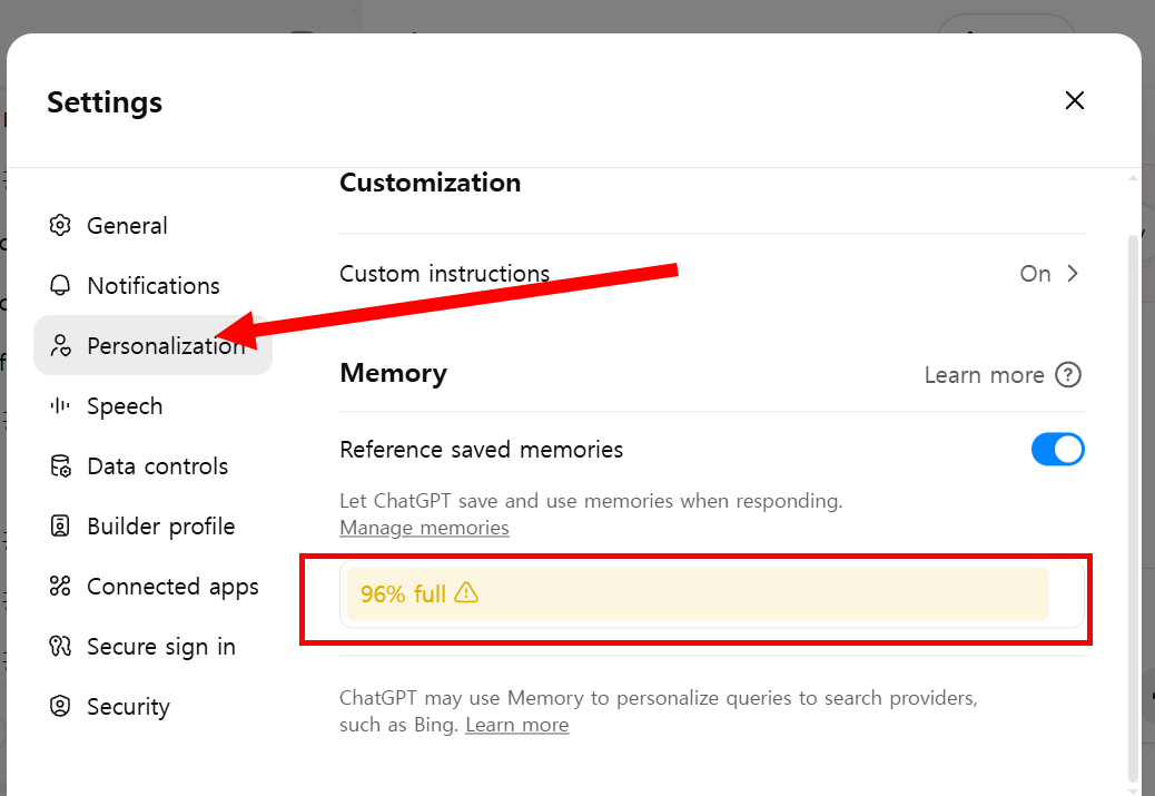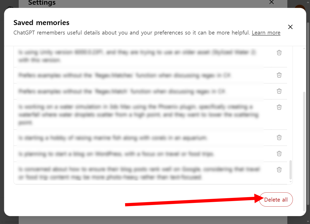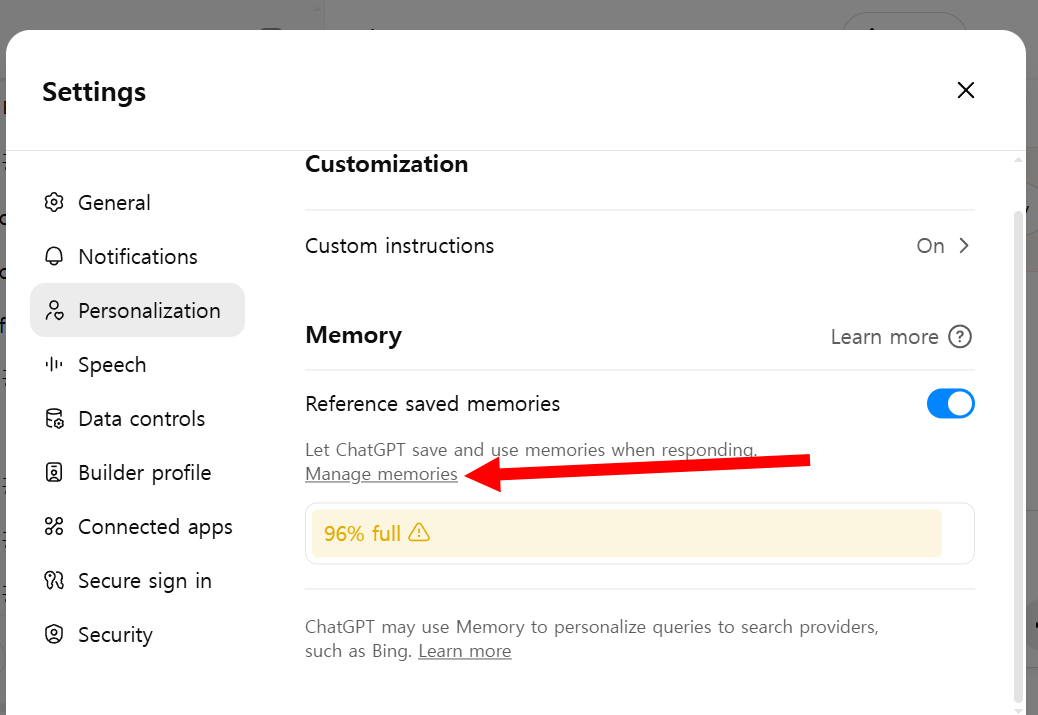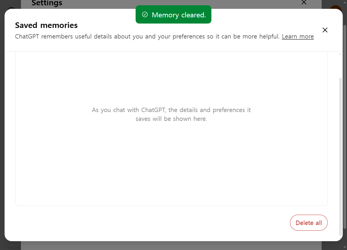 ChatGPT 에서 저장된 메모리(Memory) 비우기