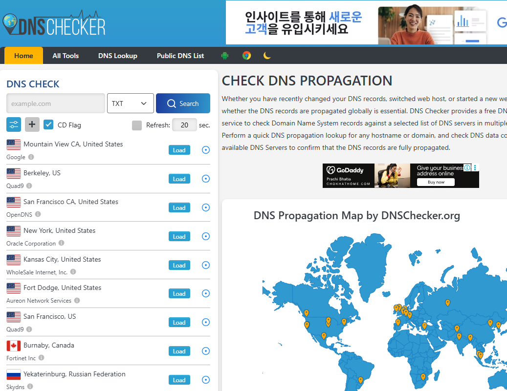 DNS Checker 웹사이트에서 무료 DNS 검사하기(DNS 레코드 전파 조회)