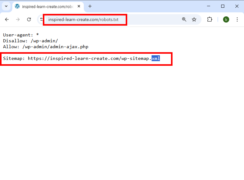 2)사이트맵 주소를 확인하려면 브라우저 주소 입력란에 사이트주소/robots.txt를 입력합니다.