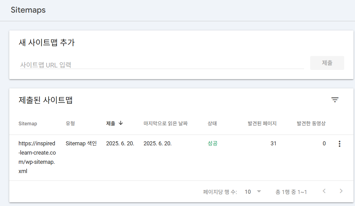 5)사이트맵이 정상적으로 제출된것을 확인할수있습니다.