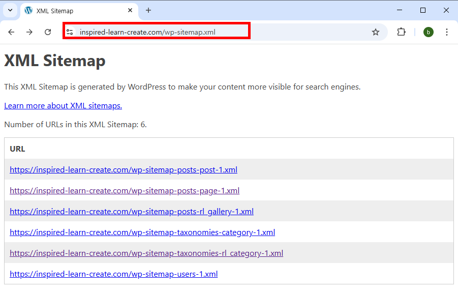 해당 사이트의 사이트맵 주소를 확인할수있습니다. 워드프레스의 경우 기본 사이트 맵 주소인 사이트주소/wp-sitemap.xml을 사용합니다.