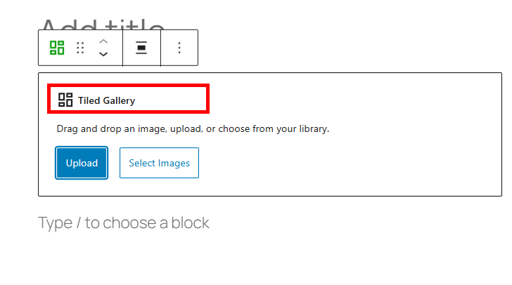 2)tiled gallery 블록에서 이미지를 업로드 및 선택합니다.