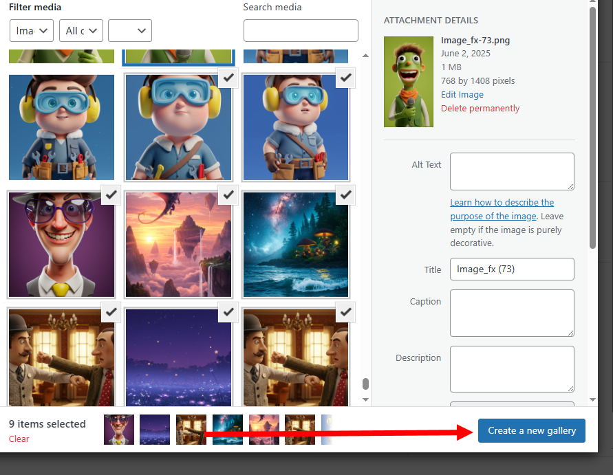 3)갤러리에 사용할 모든 이미지를 선택하고 create a new gallery를 선택합니다.