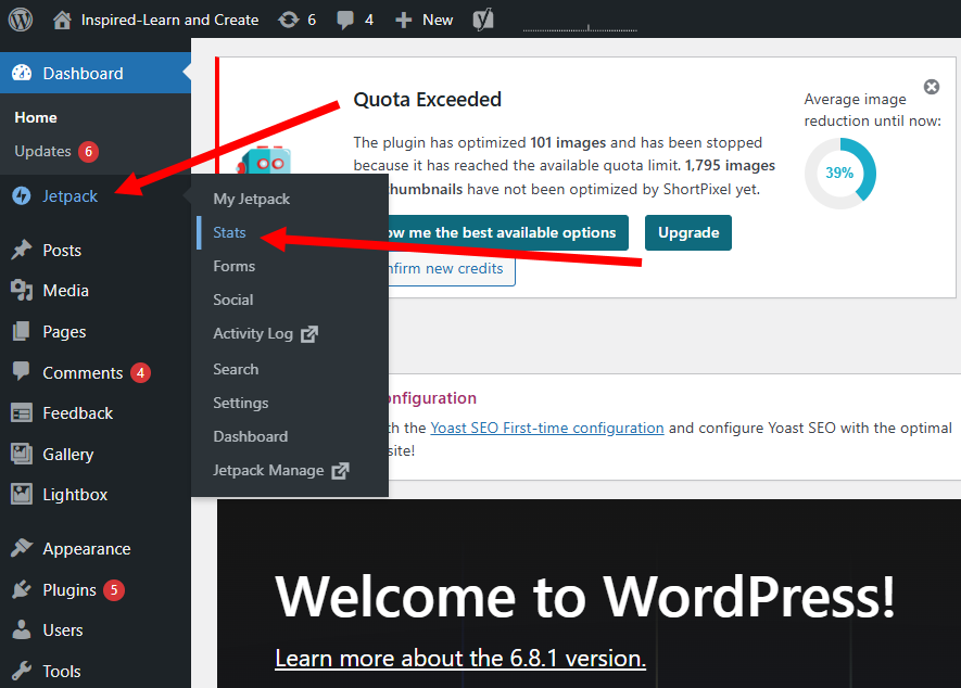 1)워드프레스 대시보드에서 jetpack 플러그인의 stats 메뉴로 이동합니다.