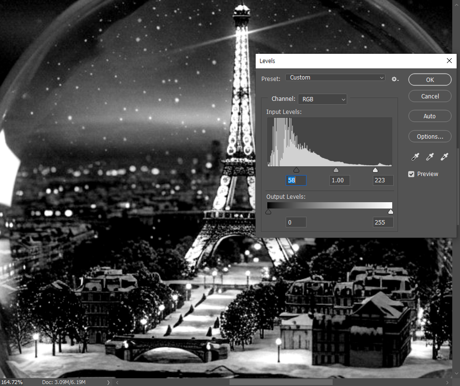 7)레벨(levels)을 사용하여 이미지의 밝기 대조를 조절합니다.