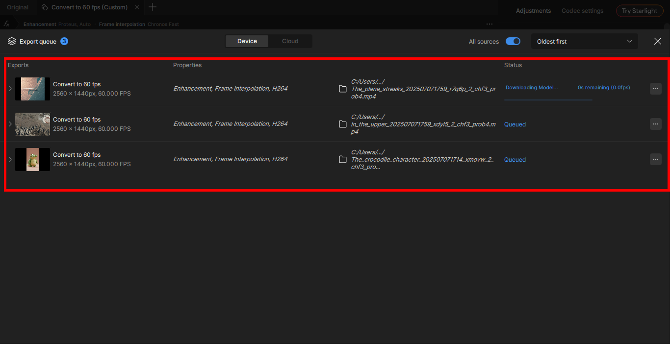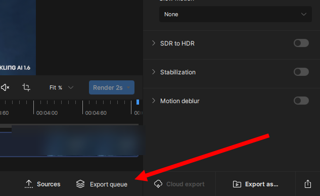 8)하단의 export queue에서 현재 처리중인 동영상 대기열 목록을 확인할수있습니다.