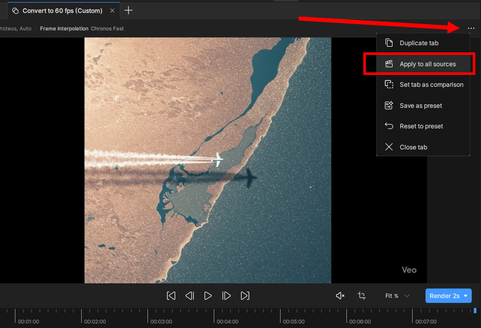 10)현재 동영상에서 사용중인 프리셋 및 설정을 모든 소스 동영상에 적용하려면 apply to all sources를 선택합니다.