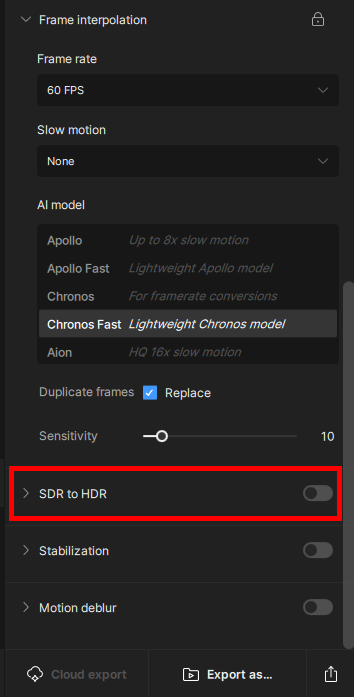 5)SDR 또는 HDR 옵션을 선택합니다.
