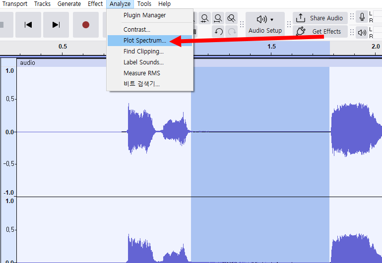 4)상단의 analyze 메뉴에서 plot spectrum으로 이동합니다.