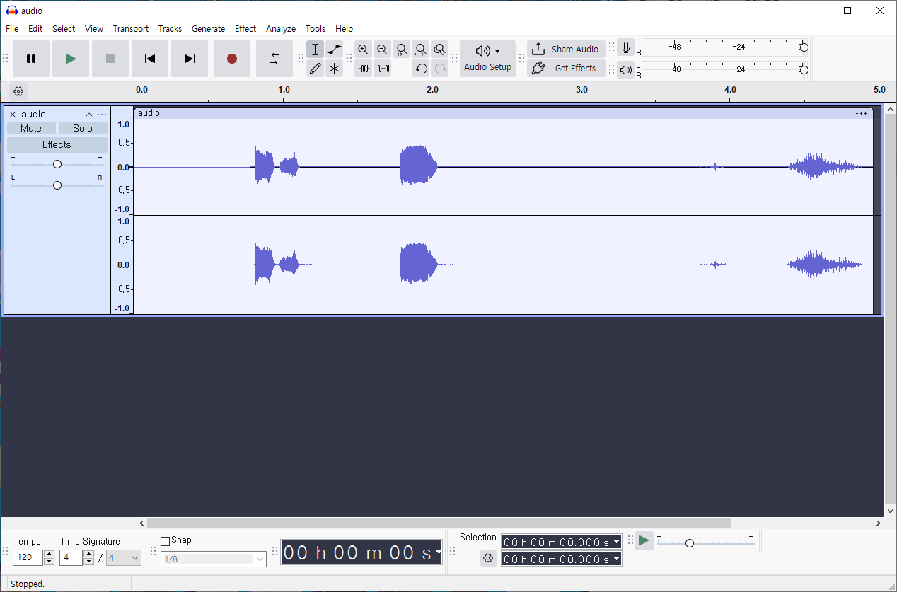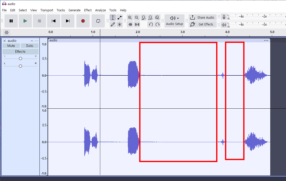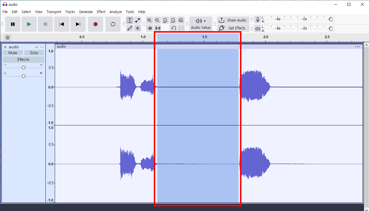 1)Audicity에서 노이즈를 제거할 오디오 파일을 열기합니다.