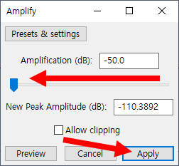 7)amplification 수치를 낮추고 적용합니다(apply)