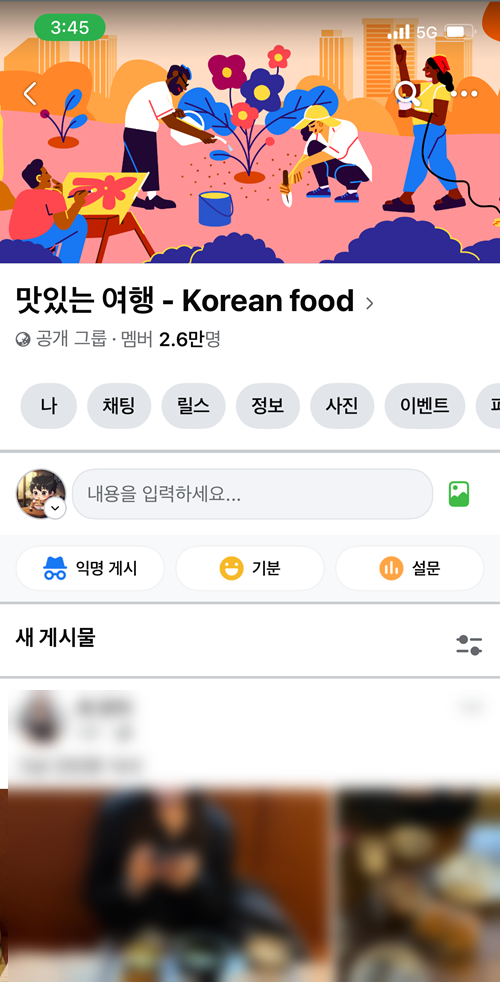 6)그룹 가입이 완료되면 게시물 업로드 및 그룹 활동을 할수있습니다.