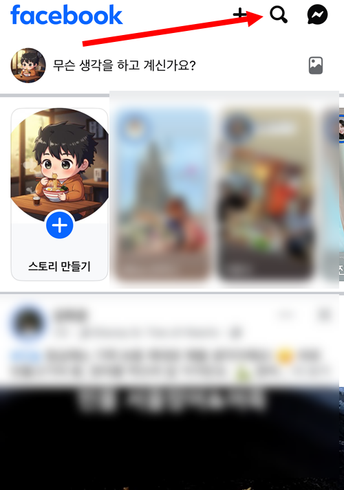 1)페이스북 우측 상단의 검색으로 이동합니다.