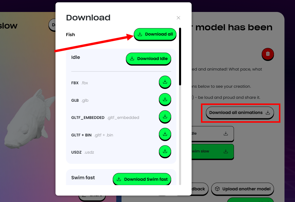 14)3D 모델과 모든 애니메이션을 다운로드하려면 download all을 클릭합니다.