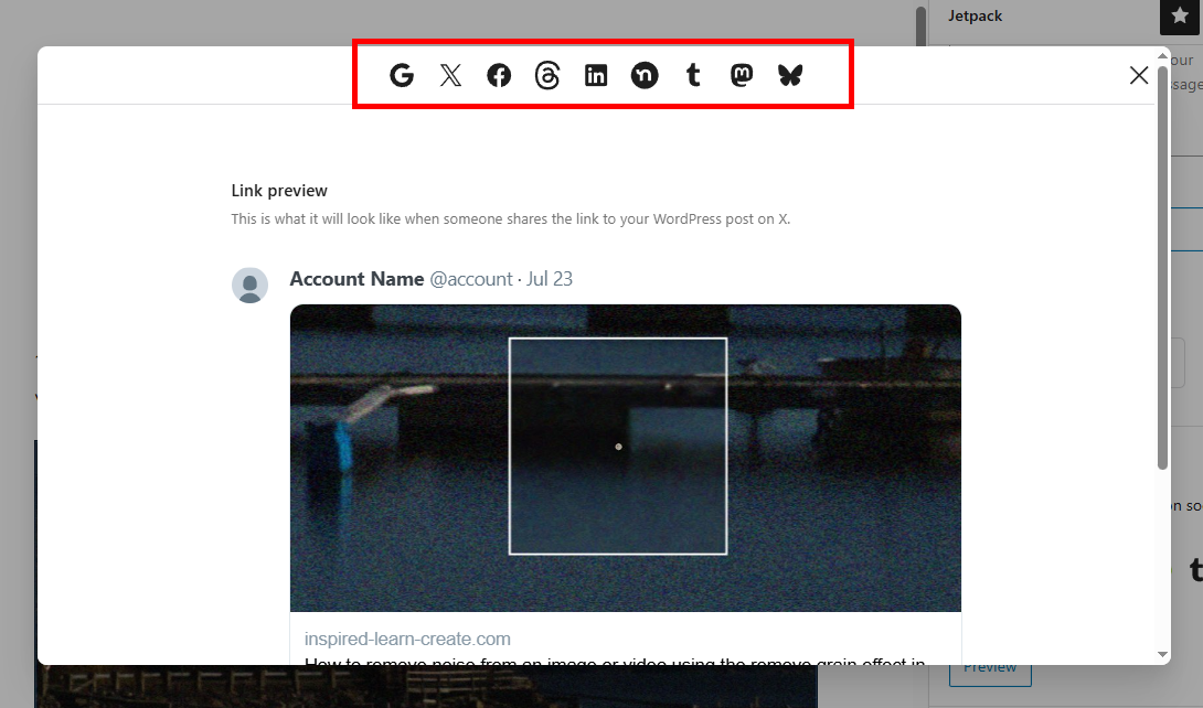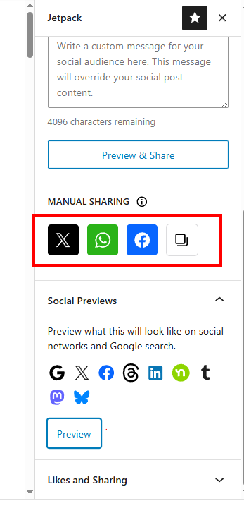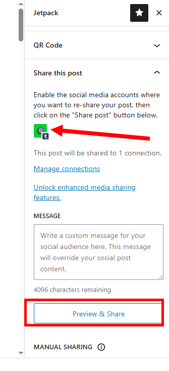 10)우측 상단의 제트팩 아이콘을 활성화하고 share this post를 확인합니다.