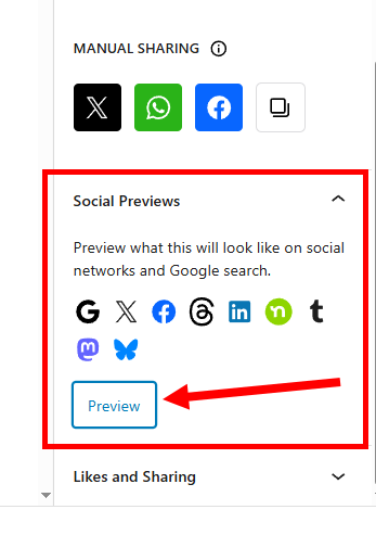 15)social previews에는 해당 게시물을 공유했을때 플랫폼에서 어떻게 표시되는지 미리보기를 확인할수있습니다.