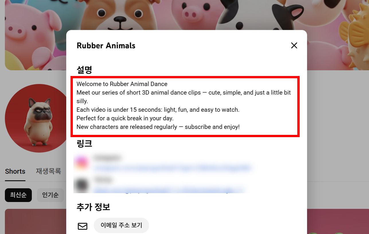 유튜브 채널에서 설명이 표시되는 부분