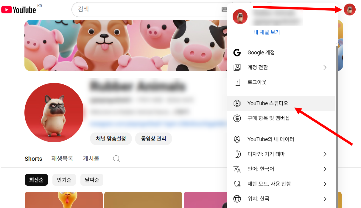 6)내 유튜브 채널에서 유튜브 스튜디오 메뉴로 이동합니다.