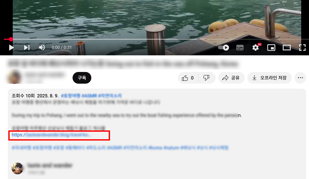 5)인증을 완료하면 업로드한 동영상의 설명에서 사이트 주소를 정상적으로 클릭할수있습니다.