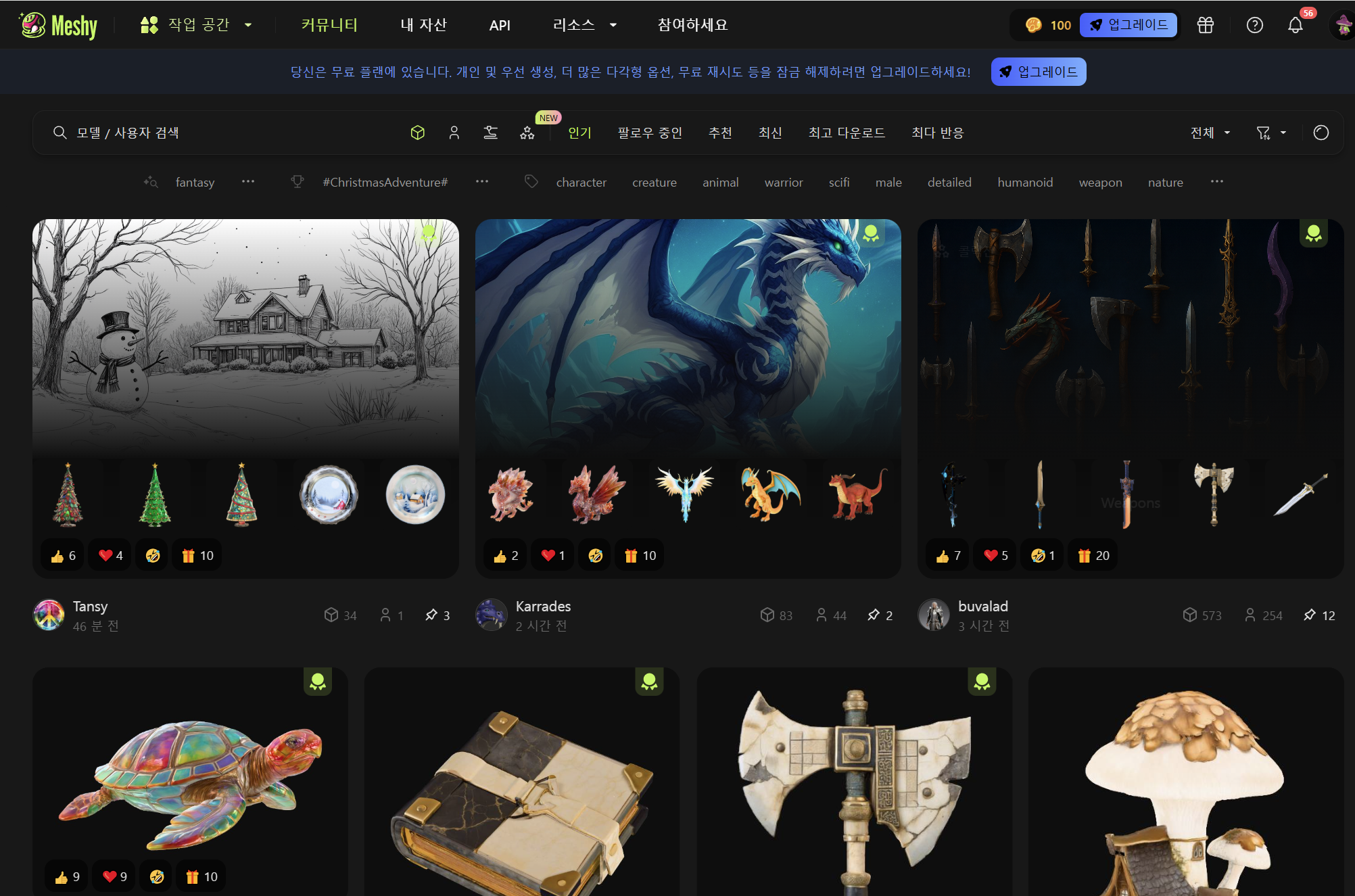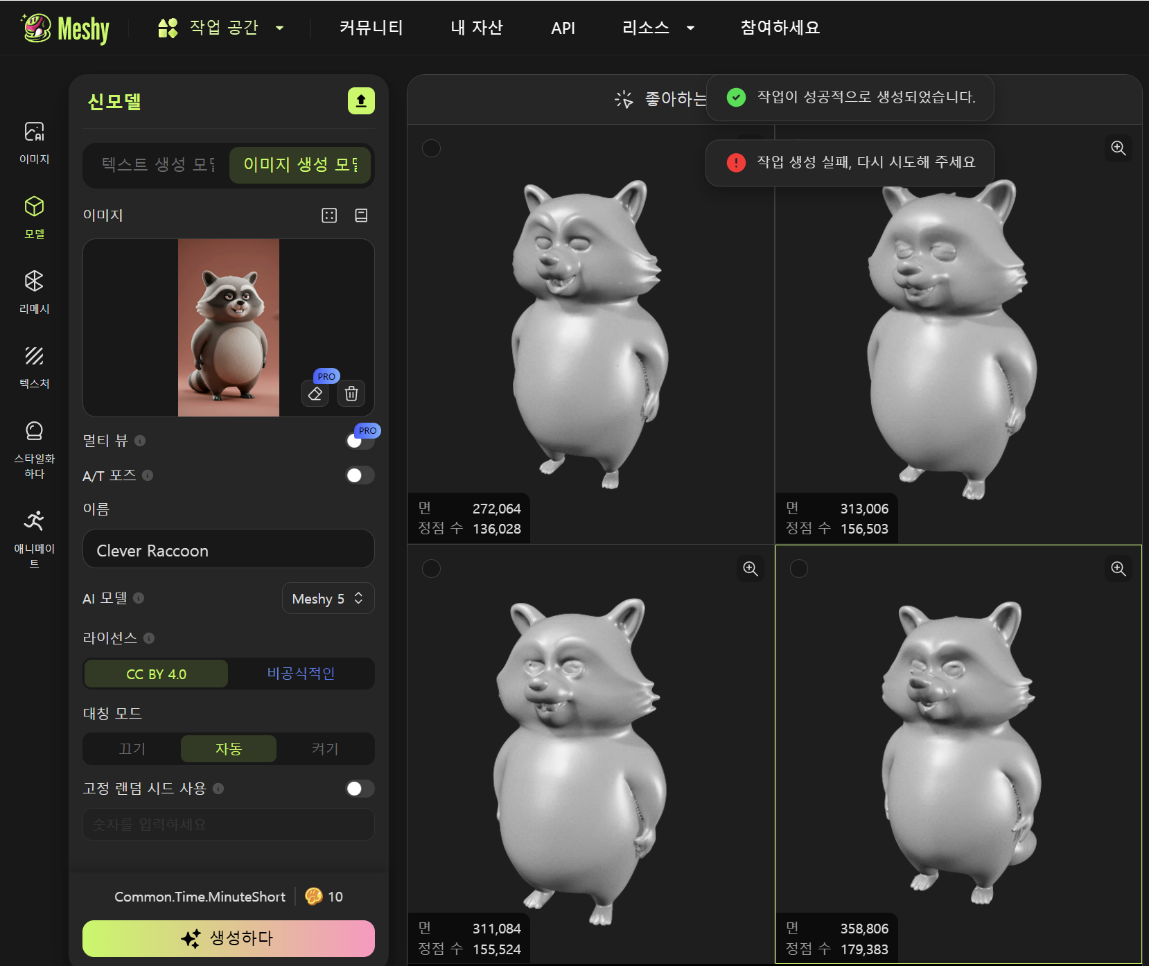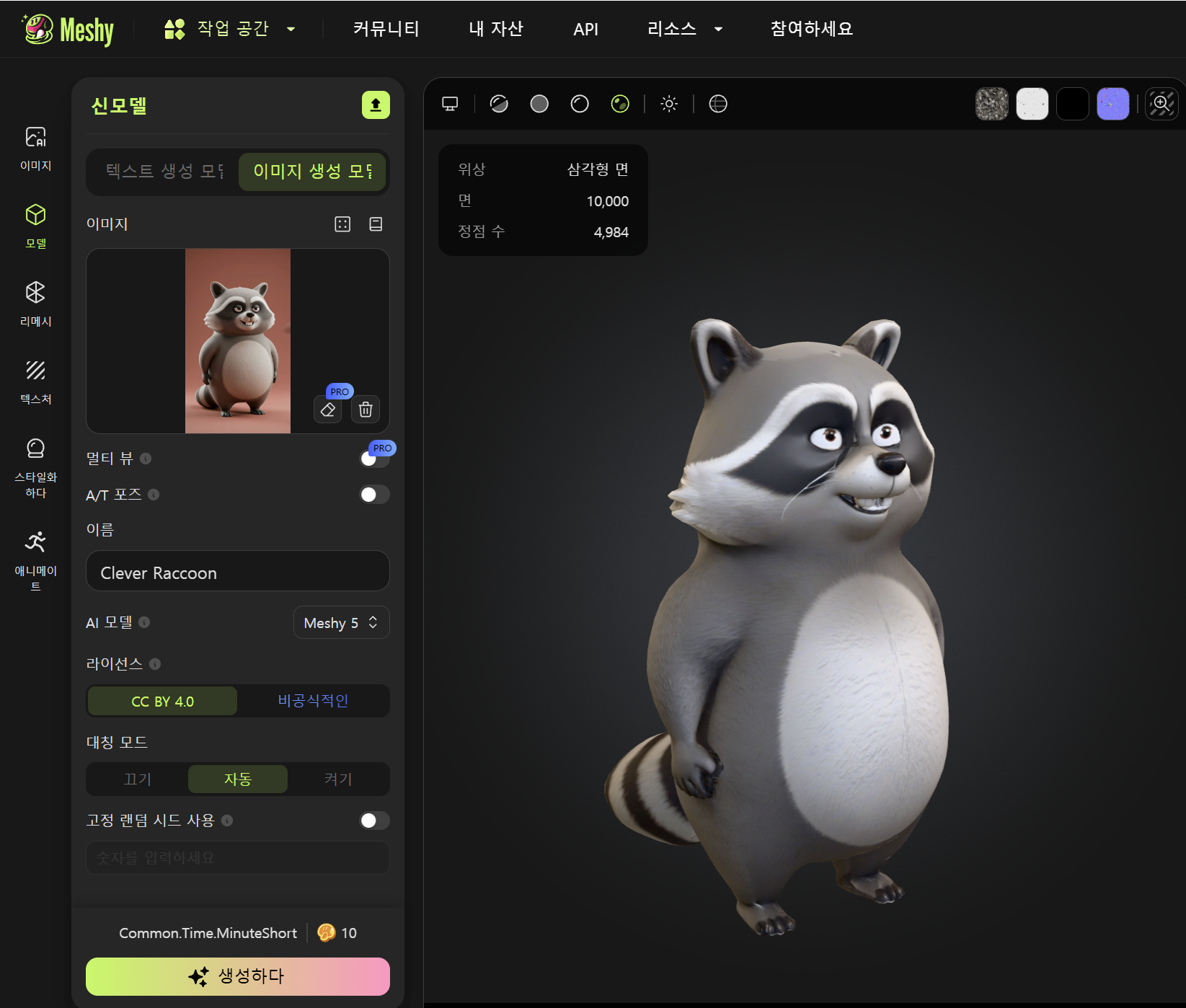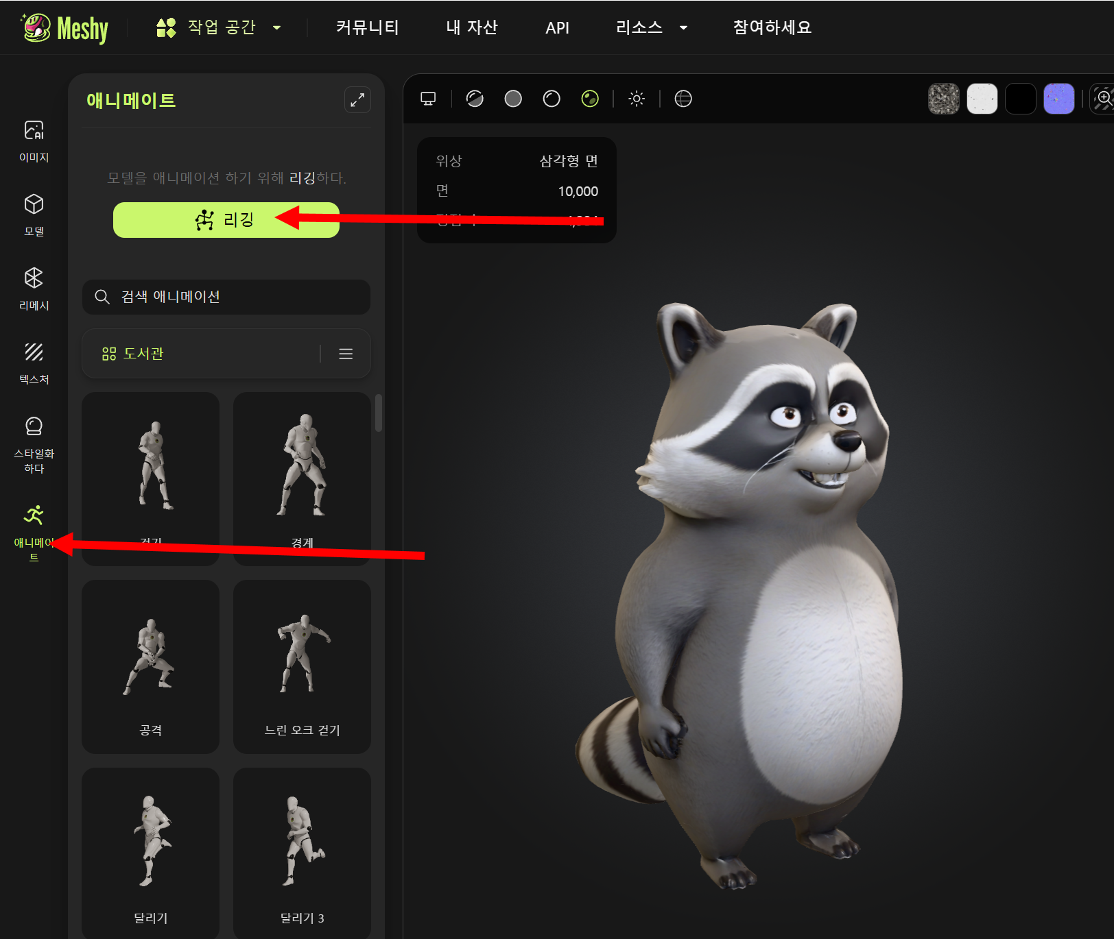 Meshy AI를 사용하여 3D 모델링하기(텍스트 프롬프트, 이미지소스, 리깅, 애니메이션)
