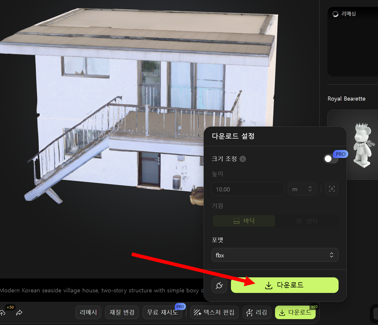 7)3D 모델 및 텍스처를 다운로드하려면 하단에서 다운로드를 선택합니다.