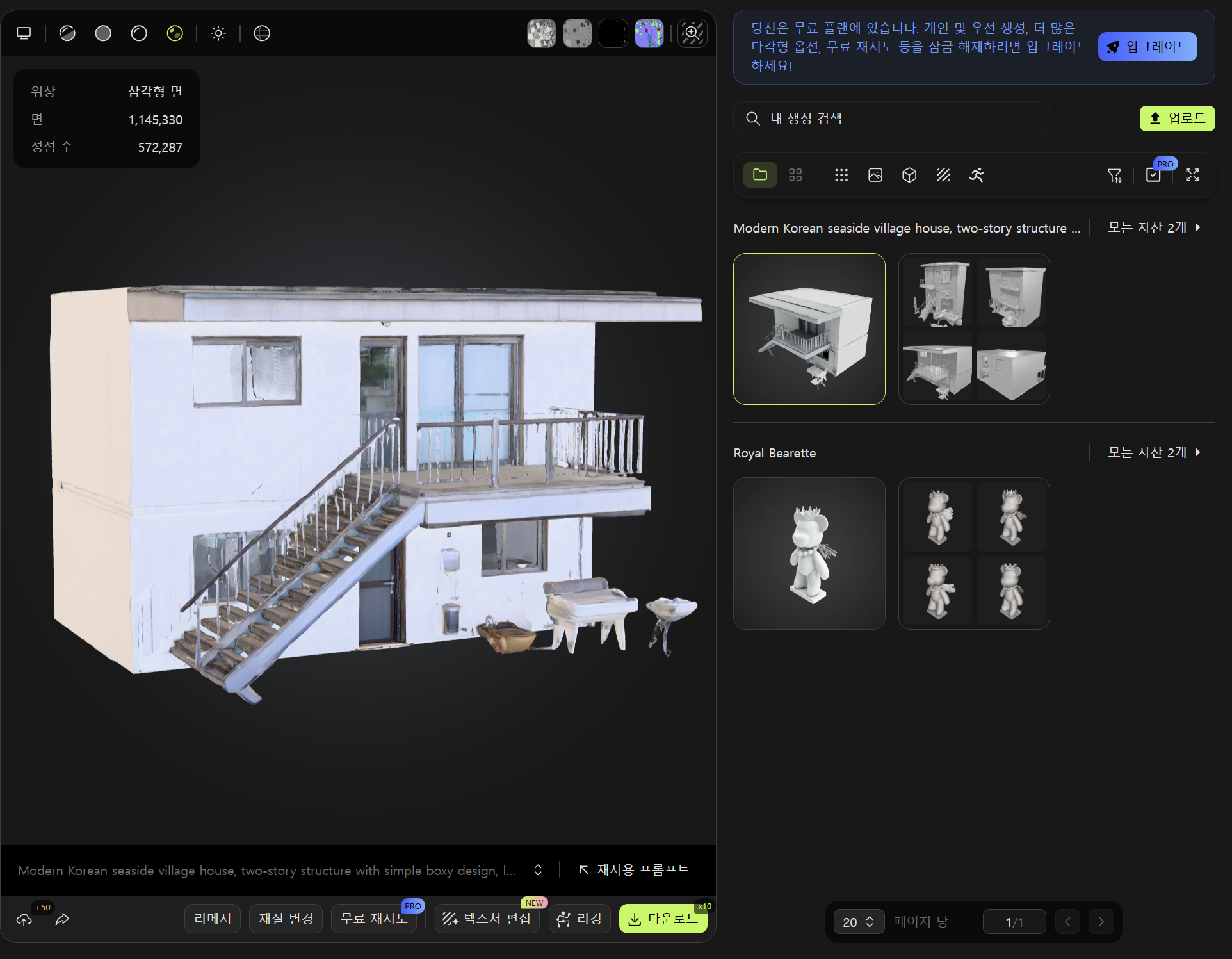 나만의 3D 모델을 업로드하고 AI 텍스처링하기