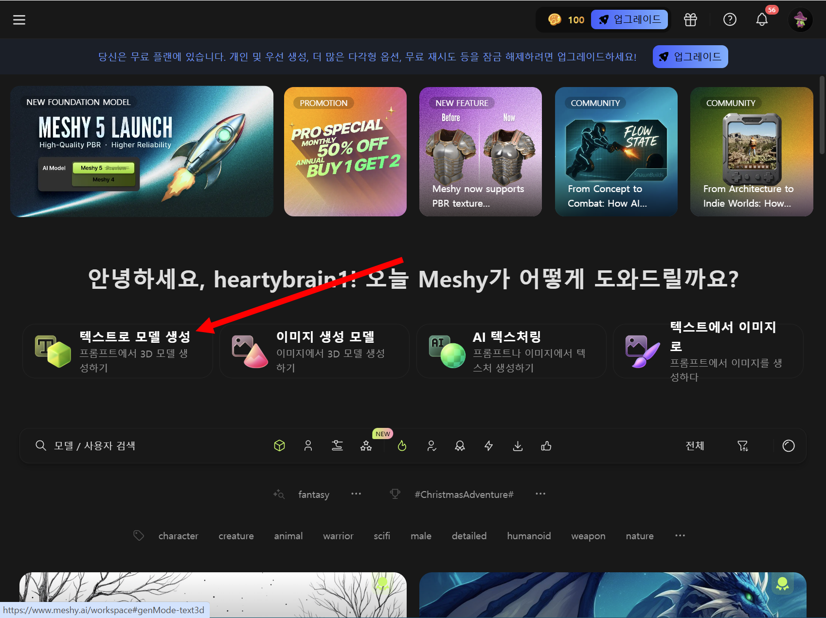 1)Meshy AI 웹사이트로 이동합니다